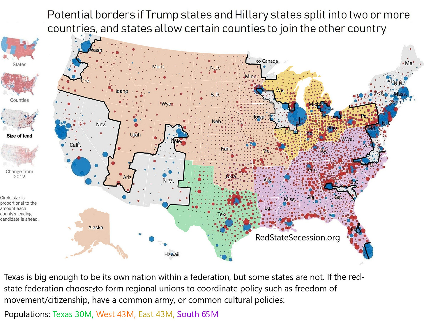 Not obvious on this map, but most Hispanics live in big cities, which are in blue states. Plus, Texas might opt to be independent from any union of states.